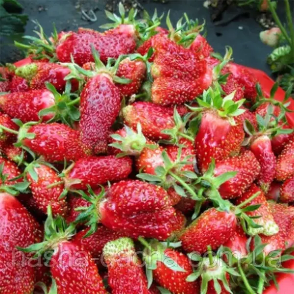 "Купчиха" – оригінальна гібридна селекція (суниця-полуниця) виведена в результаті схрещування садової полуниці та великоплідної суниці. Вирізняється великоплідністю полуниці, високою морозостійкістю та смаком лісової суниці. Сорт Купчиха простий у догляді та дає багатий урожай – до 500 грамів з куща! Сорт середнього терміну дозрівання. Збір врожаю починається з третьої декади червня і триває до середини липня. Полуниця Купчиха поєднує в собі все найкраще від полуниці та суниці. Ягоди її великі та важкі – до 20 грамів і близько 6 см у довжину. Вони добре переносять перевезення, тому сорт– просто знахідка для всіх, хто займається продажем ягідних. Полуниця Купчиха не перебірлива щодо клімату, тож приживається як на півночі, так і на півдні України. Ще однією безперечною її перевагою є висока морозостійкість (-25 °C). Звичайно, у сорту є і мінуси. Щоправда, вони дуже істотні. До таких відноситься невелика кількість вусів – їх ледве вистачає для оновлення грядок, неоднорідність ягід – всі різних, часто химерних, форм та розмірів, забагато квітконосів – через що врожайність потрібно брати під контроль. Врожайність сорту залежить не тільки від якості посадкового матеріалу, а й від того, як садівник про буде піклуватися. Термін посадки полуниці Купчиха – весна або серпень–жовтень. Терміни дозрівання – червень–липень. Результатом весняної посадки будуть квітконоси. Їх одразу видаляють, щоби не послаблювали кущі. Під посадку полуниці виділяють добре прогрівані сонцем і провітрювані ділянки. Легка півтінь також допускається. Не варто садити рослину в заражений ґрунт. Тому його, про всяк випадок, обробляють розчином марганцівки. Ще одна важлива маніпуляція, яку проводять із ґрунтом – перекопують і вносять добрива. Наприклад, кілька відер перегною з парою склянок попелу. Схема посадки для тих, хто вирощує для продажу та для себе – трохи відрізняється. У першому випадку використовують схему 50х50 см, у другому – 40х40 см. Ряди (грядки) мають бути на відстані близько 1 м.